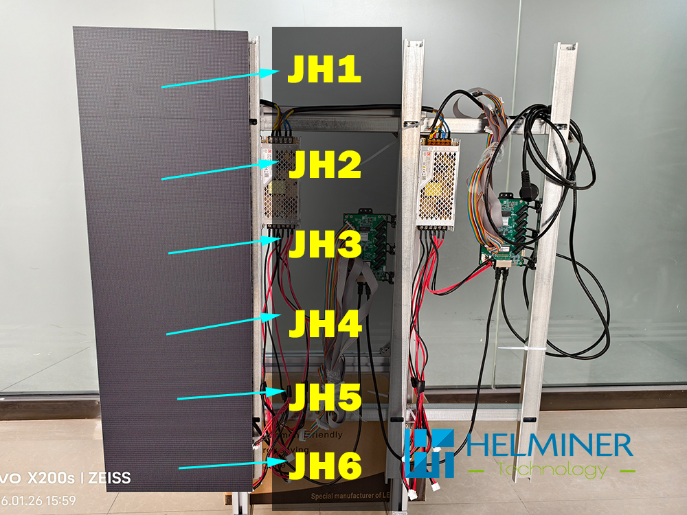 The connection of the power cord is also direction-dependent, please refer to the position of the red frame in the picture.