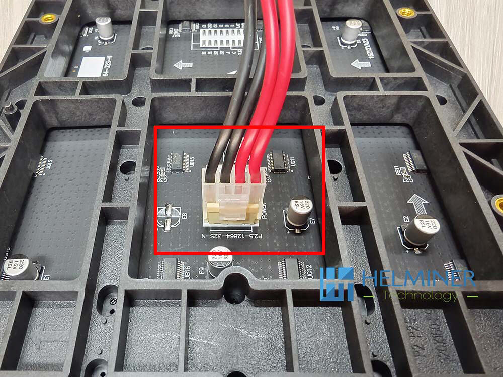 - Fix the power supply and data cards to the support structure according to the reference position in the drawing.
