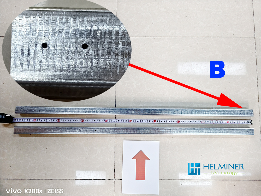 Two screw holes are placed in each group, for a total of four groups of screw holes. This side is facing upwards.